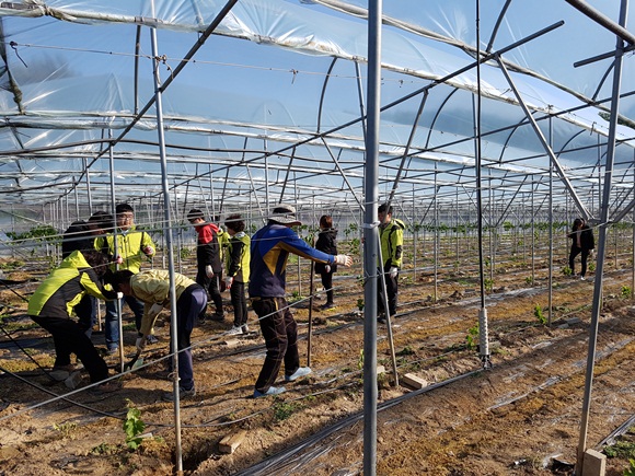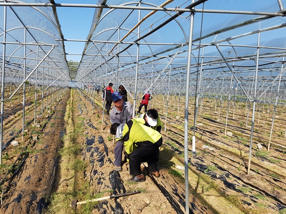 이날 초곡리 임상호씨의 포도 비닐하우스(1동, 150㎡)가 강풍으로 인해 지주 상당수가 파손되는 피해를 입었는데, 일손이 부족해 복구에 엄두를 내지 못한 실정이었다.