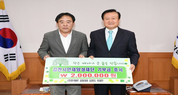 [김천](주)한국BRT은 5월 9일 김천시청을 방문해 김천시 미래를 위한 우수인재육성과 김천교육발전을 위해 조성 중인 김천시인재양성재단에 장학기금 2백만 원을 기탁했다.