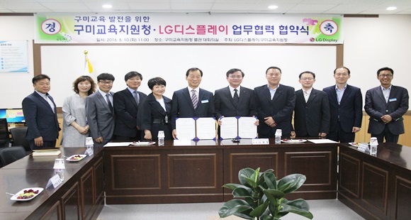 [구미] LG디스플레이와 구미교육지원청은 5월 10일 지역 학생들의 꿈과 끼를 살려 행복교육 실현사업을 위한 업무 협약식을 진행했다.