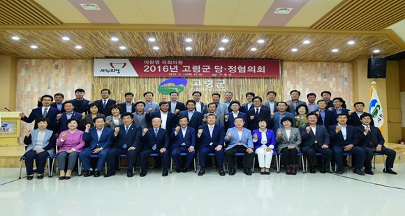 [고령] 경북 고령·성주·칠곡 이완영 국회의원은 5월 12일 고령군청 대가야홀에서 당정협의회를 개최하고 고령군 역점 추진사업, 총선 공약사업 등의 국비확보 방안에 대해 집중 논의했다.