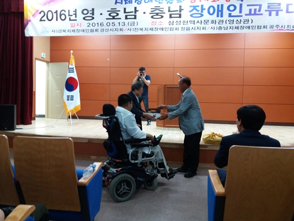 [경산] 경북지체장애인협회 경산시지회는 5월 13일 삼성현역사문화관에서 최영조 경산시장과 경산시의회 이천수 의장, 전북지체장애인협회 정읍시지회 김태진 지회장, 충남지체장애인협회 공주시지회 조휘영 부지회장 및 회원 등 150여명이 참석한 가운데 2016년 ‘영·호남·충남 장애인 교류대회’ 를 개최했다.
