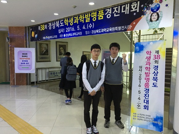 [구미] 기계⋅전자분야 모바일 마이스터고인 금오공업고등학교(교장 이형규)는 2016년 제38회 경상북도학생과학발명품 경진대회에서 3학년 박정웅 학생이 ‘학습 용품’ 부문에서 우수상, ‘생활과학’ 부문에서 3학년 정희도 학생이 장려상을 수상했다.