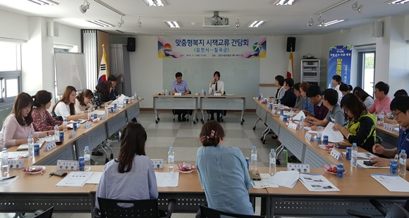 [김천] 김천시는 지난 5월 17일 시립미술관 세미나실에서 김천시의 초대로 김천시와 칠곡군 복지업무담당자 총 30명이 모인 가운데 ‘복지업무 시책교류 간담회’를 개최했다.