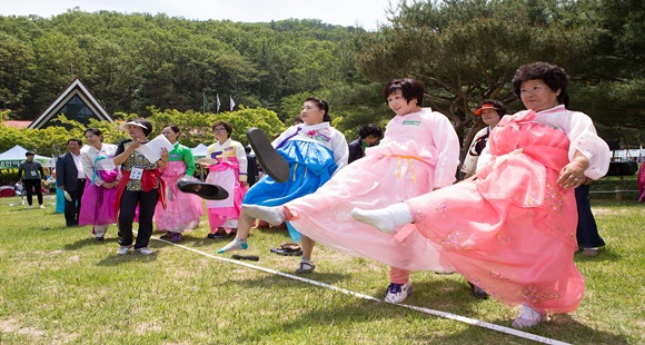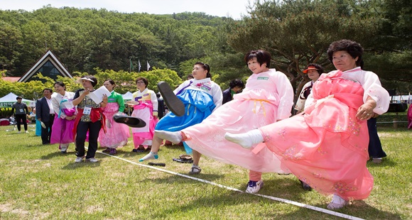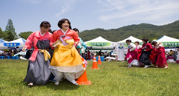 식전행사인 정형숙 무용단의 부채춤을 시작으로 의식행사, 내빈들의 투호, 고무신양궁 시연 등의 이벤트에 이어 26개 여성단체 및 27개 읍면동별 민속경기 대항전으로 투호, 고무신양궁, 굴렁쇠 릴레이, 지네발 달리기가 행사장 곳곳에서 이어졌다.