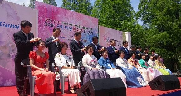[구미] 구미시는 5월 19일 금오산 잔디광장에서 여성단체회원 등 2,000여명의 지역여성들이 참석한 가운데 ‘꿈꾸는 여성’, ‘건강한 가정’, ‘행복특별시 구미’를 주제로 2016 구미 여성 한마음 큰 잔치를 열었다.