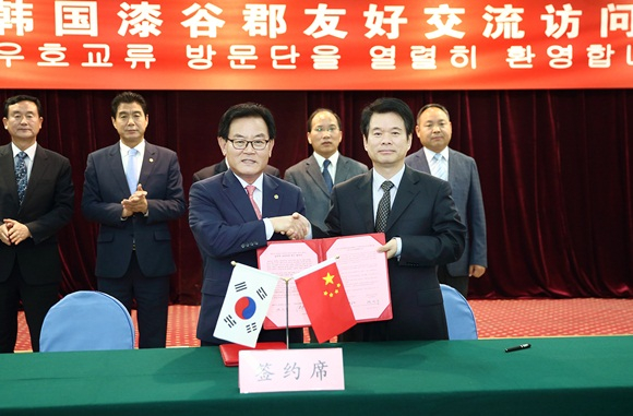 [칠곡] 백선기 칠곡군수를 비롯한 방문단은 지난 5월 17일 중국 제원시를 방문해 공무원 상호파견 협약을 체결했다.