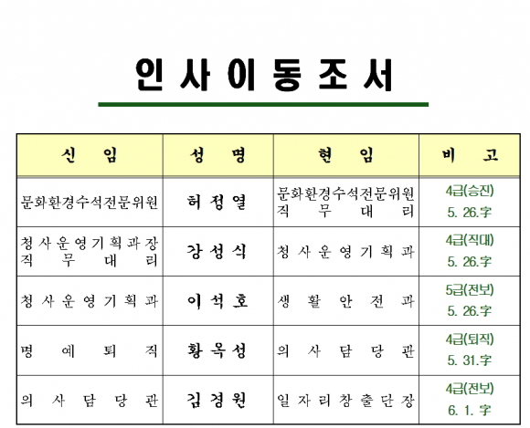 한편 도청은 청사운영기획과 신설외 인사이동을 발표했다.
