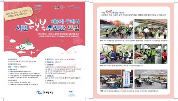 [구미] 구미시는 시민과 소통하고 현장의 목소리를 직접 듣고 시정에 반영하기 위해 오는 6월3일 ~ 24일까지 제3기 시민행복추진단 100명을 모집한다.