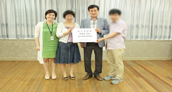 후원금을 전달받은 가족들은 “계속 재발하는 병으로 꾸준한 치료가 필요하지만 경제적인 부담이 너무 커 치료를 미루고 있었는데, 이번 후원금으로 적절한 시기에 무릎수술을 할 수 있게 되어서 너무 고맙다.”며, “건강을 되찾아 열심히 감사히 살겠다.”고 다짐했다. 포스코강판 이성기 과장은 “어려운 장애아 가정에 적게나마 도움이 돼 꾸준한 재활치료가 이뤄져 장애아들에게 희망이 됐으면 한다.”고 소감을 밝혔다. |