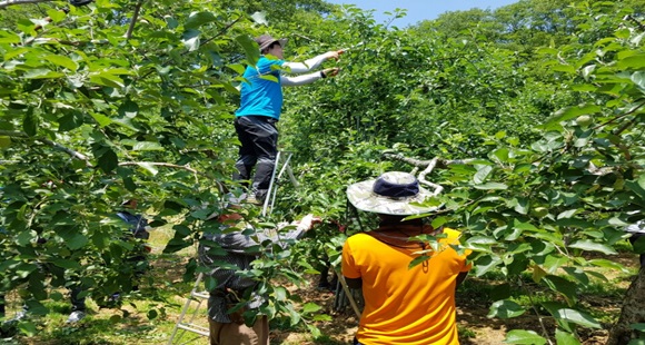 또 임하면사무소 직원 13명도 지난 30일 사과솎기 작업을 하다가 사다리에서 떨어져 작업을 하지 못한 농가를 찾아 일손을 지원했다.