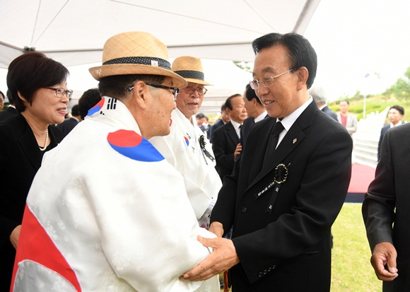 김관용 도지사는 추념사를 통해 “우리 경상북도는 나라가 어려울 때마다 구국의 중심에 서 있어 온 호국의 고장이다. 호국영령들의 숨결이 살아있는 이 곳 의성 호국공원에서 현충일 추념식을 갖게 된 것은 의미가 더욱 크다. 지금 우리가 누리는 자유와 번영은 질곡의 역사에도 굴하지 않고 당당히 맞서 싸운 선열들의 희생위에 세워졌다”며,