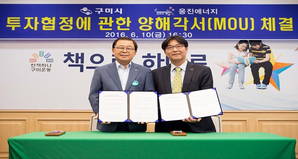 신광수 웅진에너지 사장은 “구미시의 아낌없는 지원과 투자유치 노력에 감사하며, 이 곳 구미에 태양광 웨이퍼 전용 공장을 지어 웅진에너지의 성장 동력 확보는 물론 구미시의 발전에 기여하겠다.”고 밝혔다.