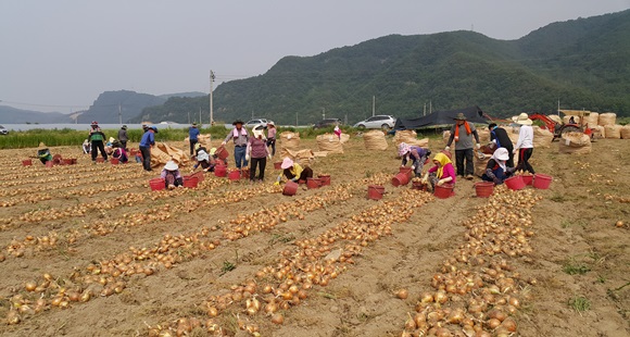 [고령] 고령군청 직원 500여명 및 대구 달서구새마을회(자매결연)는 고령군 관내에서 양파, 감자 재배 농가를 찾아 농촌일손 돕기를 실시했다.