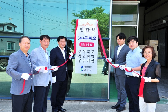 [경산] 경산시는 6월 10일 경상북도에서 추진 중인 경북청년창업우수기업 제11호점으로 선정된 ㈜투씨오 남영상 대표(2012년 경북청년CEO육성프로그램 수료, 2012년 창업)를 찾아가 경북청년창업우수기업 현판제막식을 가졌다.
