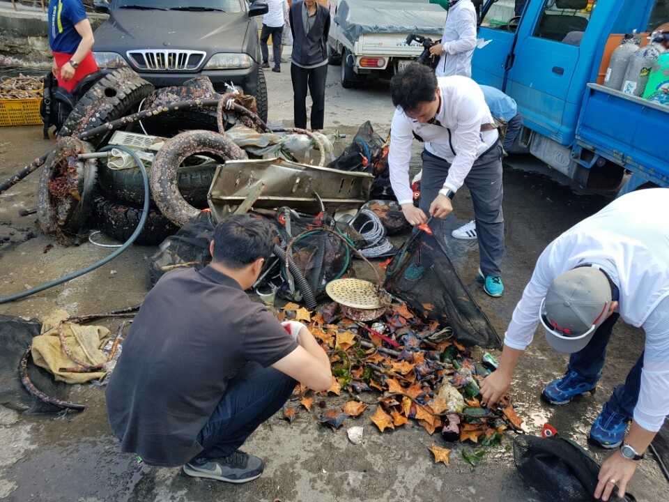 [울릉] 지난 6월 10일 포스코 클린오션봉사단이 울릉도를 방문해 도동항 수중정화작업에 나섰다.