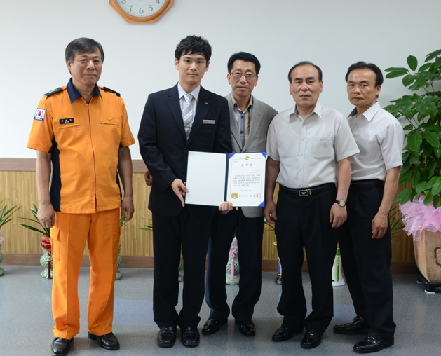 [상주]상주소방서는 6월 14일 서장실에서 2015년 겨울철 소방안전대책 우수기관 업무유공자로 선정된 한상욱 소방교에게 경북도지사 표창 수여식을 가졌다.
