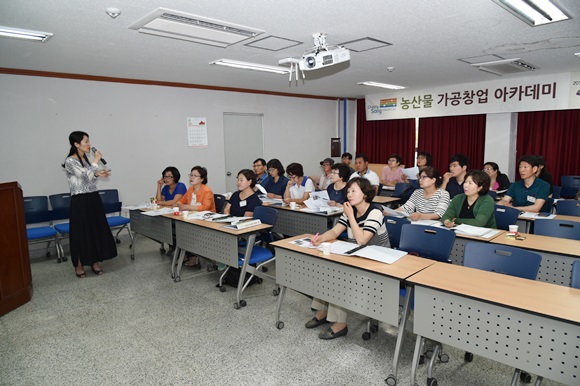 올해 4회차인 농산물 가공창업 아카데미는 생산에 주력하는 1차산업 중심의 농업을 부가가치가 높은 6차산업으로 확대시키기 위한 농산물가공 이론과 기술을 습득하고 가공품 개발 아이디어를 발굴하기 위한 교육 프로그램으로서 지난해까지 63명의 수료생을 배출했다.