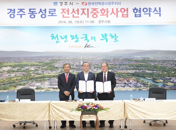 협약의 주요골자는 역사문화관광도시 경주 이미지 개선과 중심상가 환경개선을 위해 2016년부터 2018년까지 3년간 1,734백만 원의 사업비를 경주시와 한전이 50:50으로 부담하여 화신약국 ~ 중앙시장 간 동성로 900m를 폴 타입 공법 적용 도심에 무질서 하고 난립된 전선을 지중화 한다. 단, 통신선, 문화재 발굴, 도로복구 비용 등은 경주시가 부담한다.