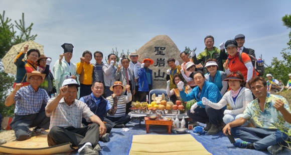 [성주] 재구 용암면향우회는 지난 6월 18일 성주군 용암면 성암산 정상에 표지석을 설치하고 제막식을 거행했다.