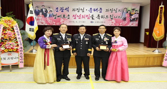 문광석 과장은 퇴임사에서 “지난 35여 년 간 소방공무원으로 재직하는 동안 많은 위험과 어려운 고비가 있었지만 가족과 직원들의 격려와 신뢰가 있었기에 잘 이겨낼 수 있었다.”고 말했다.