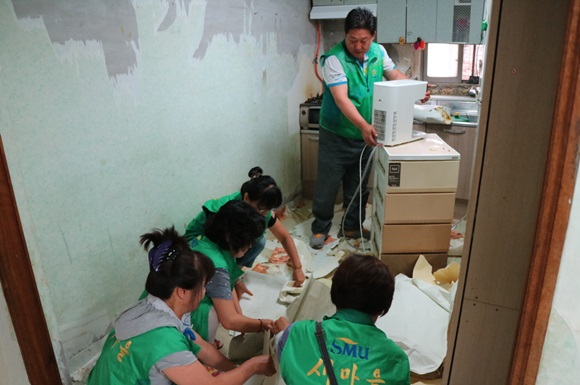 행복보금자리사업의 일환으로 추진된 사랑의 집수리 봉사는 매년 새마을협의회에서 생활이 어려운 저소득층 가구를 선정하여 도배, 장판 교체 등 주거환경을 개선해 주는 사업이다.