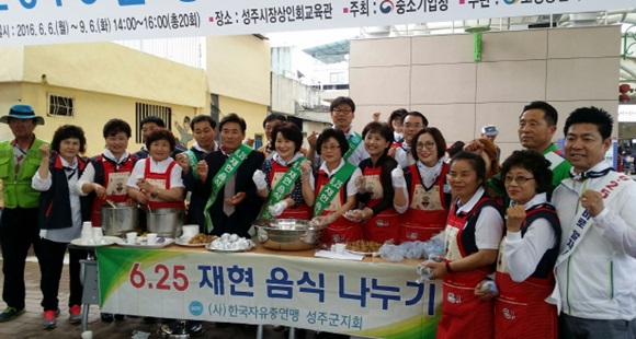 [성주] 한국자유총연맹 성주군지회 여성회는 6월 22일 성주전통시장 내 쉼터에서 ‘6·25 전쟁 음식 재현 시식’ 행사를 가졌다.