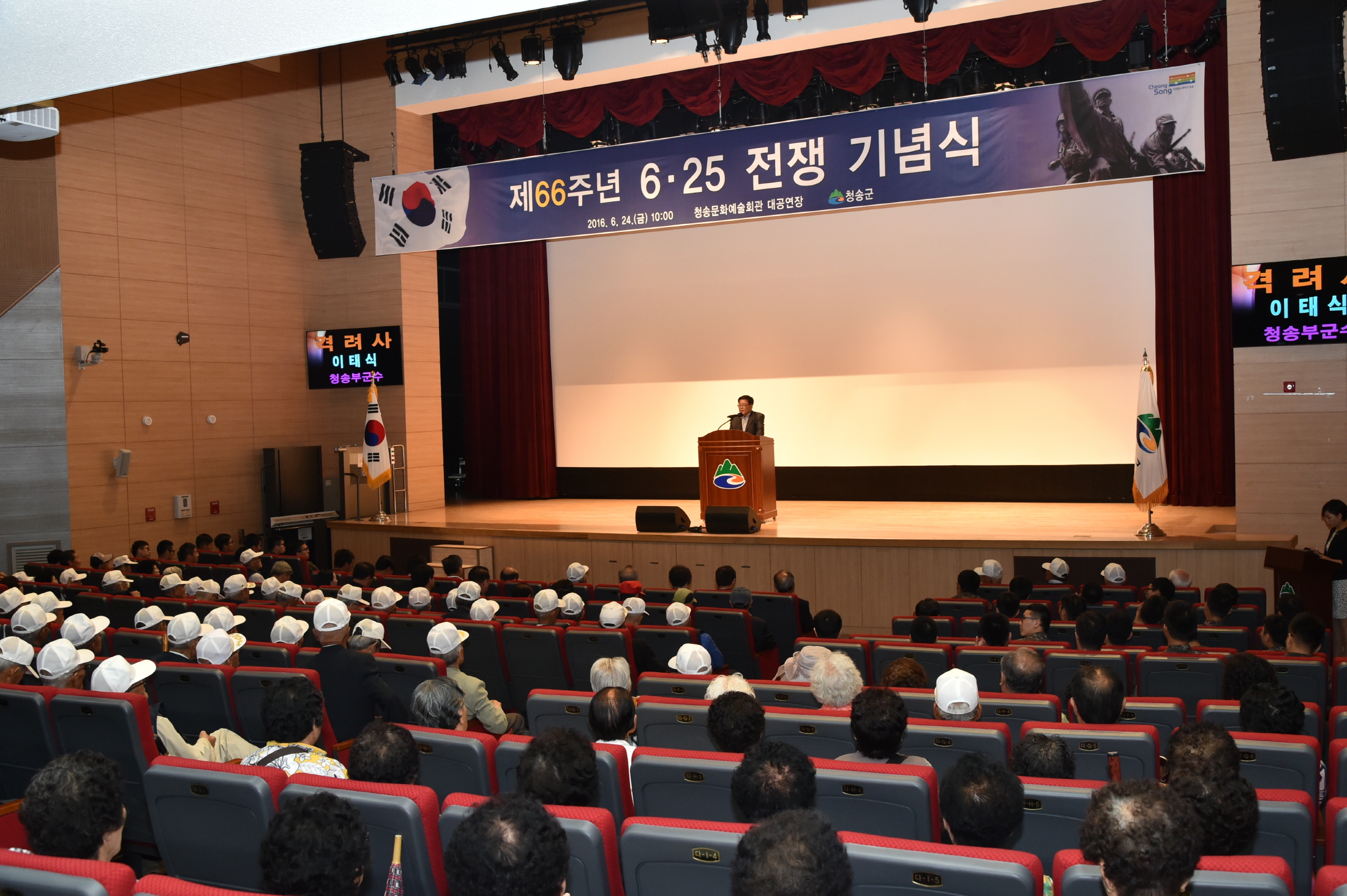 [청송] 청송군은 6월 24일 제66회 6·25전쟁기념일을 맞이해 청송문화복지타운에서 6·25참전유공자 및 주요 기관단체장을 비롯한 보훈가족 학생등 400여 명이 참석한 가운데 ‘제 66회 6·25전쟁기념식 및 안보교육 한마당’을 개최했다.