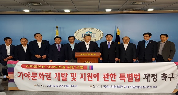 특히, 지난 16일 제19대 국회에서 발의했던 ‘가야문화권 개발 및 지원에 관한 특별법’이 제20대 국회에 재발의 됨에 따라 특별법 제정 당위성에 대한 설명과 함께 촉구 결의문 낭독 및 기자회견 순으로 진행됐다.