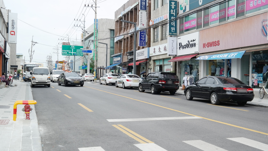 군에서는 그동안 늘어나는 차량수와 협소한 도로 사정으로 불가피하게 강력한 단속과 계도를 지속하여 왔으나, 최근 도시 미관과 효율을 위해 중심시가지 전신주와 가로수를 없애고, 그 공간을 활용하여 기존 8.5m 도로를 10.5m로 확장하여 갓길 정차구간을 만들고 교통 소통에 원활을 꾀하였다.
