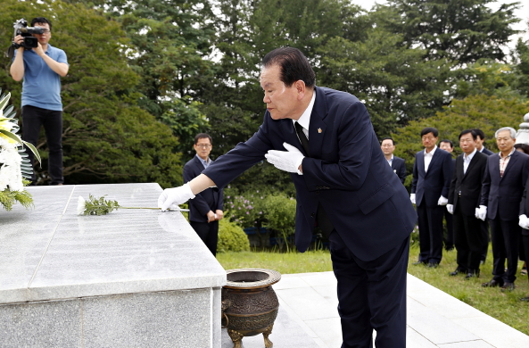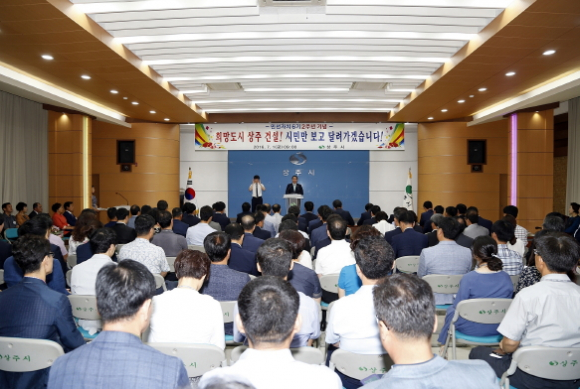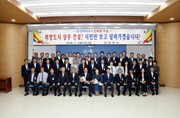 [상주]이정백 상주시장은 7월 1일 대회의실에서 직원 200여명이 참석한 가운데 민선자치 6기 2주년 기념식을 개최했다. 지속되는 경기침체를 감안, 외부 초청인사 없이 소속 직원들 만으로 검소하게 진행된 기념식에서 참석자들은 시민 모두가 살맛나고 행복한 상주를 만들기 위해 힘차게 달려온 지난 2년을 돌아보고, 더욱 낮은 자세로, 시민에게 다가가는 현장중심 열린 행정을 실천할 것을 다짐했다. 이정백 시장은 기념사를 통해 “지난 2년간 최선을 다해 왔지만 시민의 기대에 부족한 점이 없지 않았다.”고 소회를 밝히며, “시민의 뜻을 겸허히 수용하고 더 큰 상주 발전을 위해 시민, 시의회, 1,100여 명 공직자가 한마음으로 노력해 나가가는데 모든 역량을 결집해 나갈 것”이라고 각오를 밝혔다.