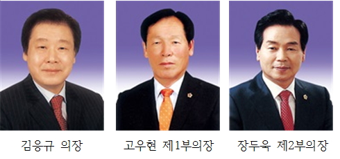 이날 의장선거 1차 투표에서 재적의원 60명, 출석의원 60명, 김응규 의원 57표, 박성만 의원 1표, 김위한 의원 1표, 기권 1표로 김응규 의원이 의장에 당선됐다. 부의장 선거에서는 고우현 의원과 장두욱 의원이 각각 당선 됐다.