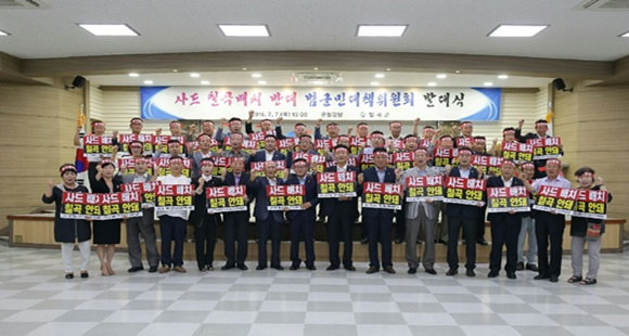 [칠곡] 칠곡군은 7월 7일 민간 사회단체장를 중심으로 67명의 사드 칠곡배치 반대 범군민 대책위원회를 발족했다.