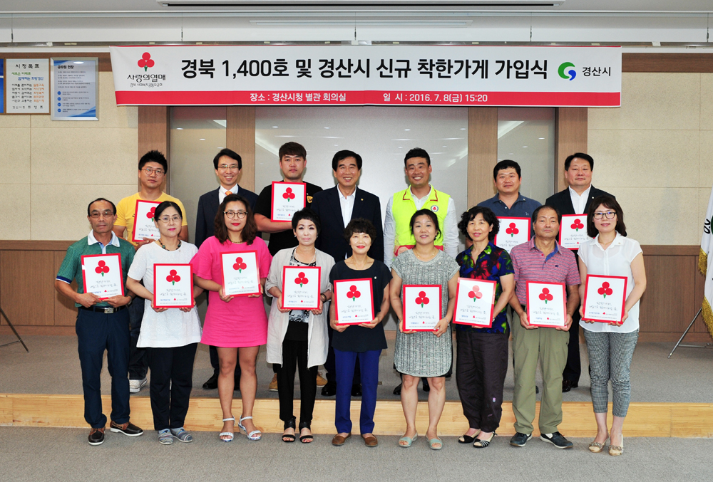 [경산] 경북 착한가게 1,400호점 돌파는 경산에서 음식점·카페·장례식장을 운영하는 가게 대표 16명의 잇단 동참으로 성사됐다.