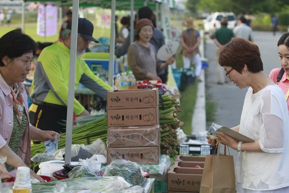 이에 경산시는 지역의 제철과일 등 농산물 소비촉진을 유도하고자 지난 7월 8일 남천둔치에서 처음으로 ‘금요반짝장터’를 개장해 제철 과일과 각종 채소류, 가공품등이 전시 판매해 소비자들로부터 좋은 반응을 얻었다.