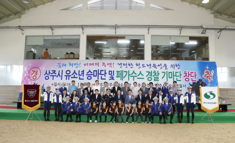 [상주] 상주시는 승마인구 저변확대와 미래 승마 꿈나무 우수선수 육성을 위한 차원에서 ‘상주시 유소년 승마단 및 페가수스 경찰(명예경찰) 기마단’을 창단하고 7월 12일 기념행사를 가졌다.