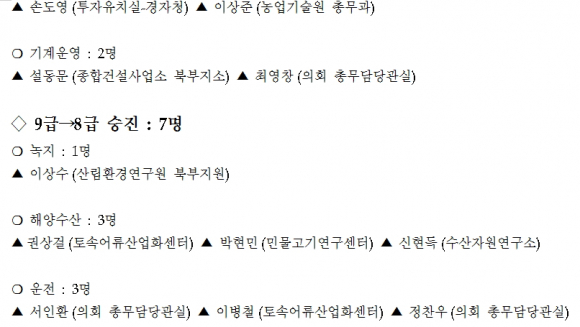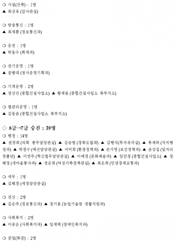 경북도 인사위원회 심의 결과 발표