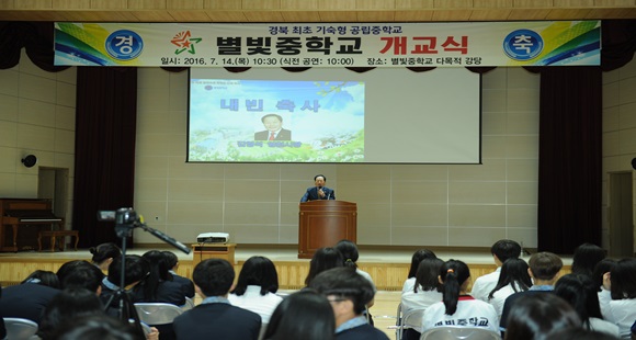 [영천] 경북 최초의 기숙형 공립중학교인 별빛중학교가 7월 14일 별빛중학교 강당에서 이영우 경상북도 교육감, 김영석 영천시장 등 교육관계자와 지역민들이 참석한 가운데 개교식을 가졌다.