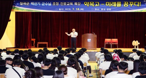 [칠곡] 칠곡군 약목고등학교는 지난 7월 14일‘전문 직업인 특강 프로그램’으로 칠곡군 백선기 군수를 초빙해‘약목고 미래를 꿈꾸다’라는 주제로 전교생을 대상으로 특강을 실시했다.