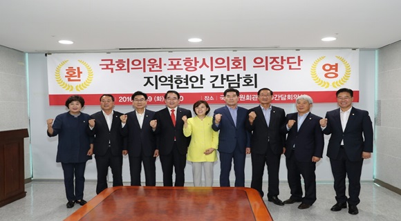 제7대 후반기 포항시의회 신임 의장단은 7월 19일 서울 여의도 국회의사당을 방문해 대구·경북 출신 의원들에게 지역 현안사업을 설명하고 국비지원을 건의했다.
