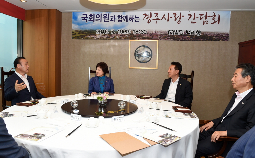 바쁜 일정에도 주요 간부들과 함께 7월 19일 서울 63빌딩 백리향에서 김석기·정종섭 국회의원, 전혜숙 더불어민주당 원내부대표 등 3명의 지역 출신 국회의원을 접견하여 인적 네트워크 구축과 고향 경주발전을 위해 여러 가지 현안사항 등에 대해 신중한 논의를 했다.