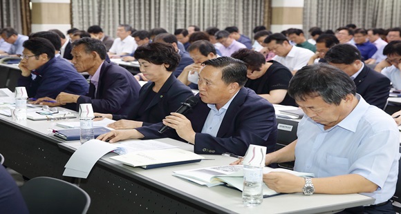 [칠곡=경북IT뉴스] 칠곡군은 지난 8월 13일 백선기 군수와 6급이상 간부공무원 150여명이 참석한 가운데 ‘민선7기 공약사항 실천계획 보고회’를 개최했다.