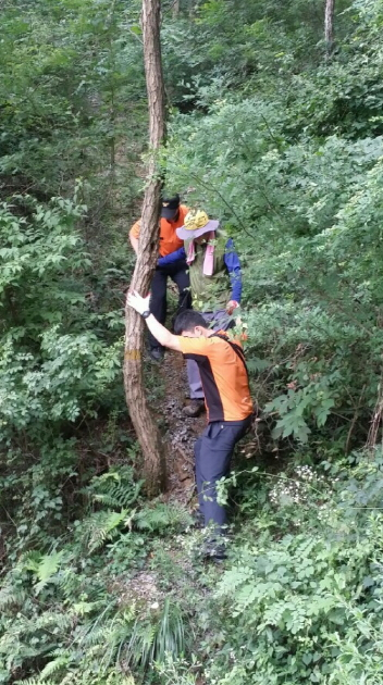 [칠곡] 칠곡소방서 119구조구급센터에서는 지난 7월 19일 17시경 지천면 연호리 신동재 정상 부근에서 조난당했다는 신고를 받고 출동했다.