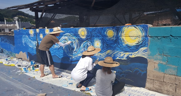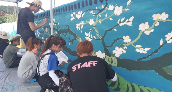 [영천] 경북대학교 예술대학 울림예술대 학생들이 여름방학을 맞아 7월 22일부터 25일까지 3박4일간 영천의 대표적 문화마을인 화산면 가상리 가래실 문화마을을 찾아 벽화 그리기 봉사활동을 실시했다.