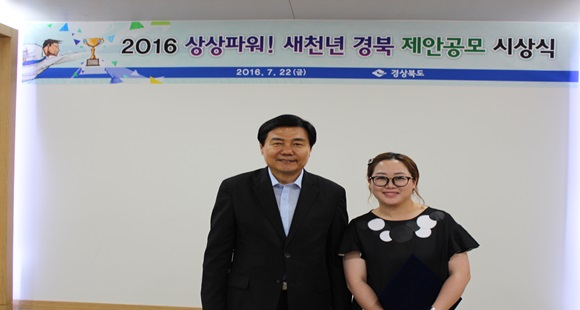 [청도] 청도군 청도읍사무소 김건희 주무관이 신 도청시대 ‘2016 상상파워! 새천년 경북’ 제안 공모전에서 공무원 부문 우수상을 수상했다.