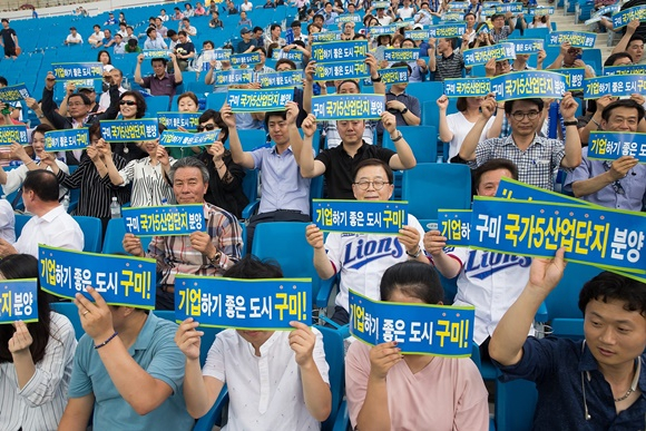 특히, 이날 시구 외에도 구미하모니 공무원합창단의 애국가 제창을 비롯해 경기장 내 홍보부스를 마련해 경기장을 찾은 야구팬들에게 구미 국가5단지 분양 홍보물과 리플릿을 나눠주는 등 기업하기 좋은 도시 명품 교육도시 구미 알리기에 적극 나섰다.