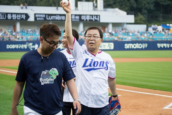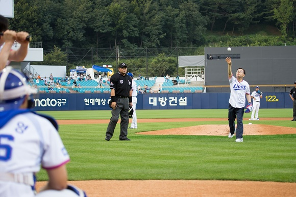 [구미] 남유진 구미시장은 7월 26일 대구삼성라이온즈 파크에서 열린 삼성라이온즈 대 NC 다이노스와의 프로야구 경기에서 구미 국가5산업단지의 성공적인 분양을 기원하며 시구를 선보였다.