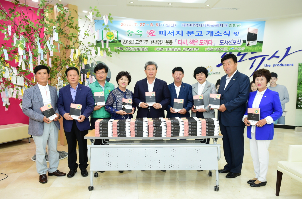 피서지 문고는 7월 27일 피서지문고 개소식 및 고령군민 한 책 읽기 도서 선포식을 시작으로 10일간 운영되며, 무료로 도서를 대출해주고 부대행사로 독서캠페인 및 저탄소 녹색생활화 실천 운동도 함께 펼친다.