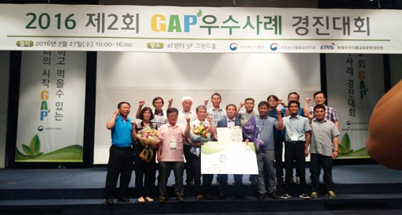 [상주] GAP 우수사례에 대한 벤치마킹의 모델화 및 지자체의 적극적인 참여 유도를 위해 7월 27일 서울 AT센터에서 2016년 제2회 GAP 우수사례 경진대회 행사가 개최됐고, 그 결과 상주 아자개영농조합법인이 은상을 수상했다.