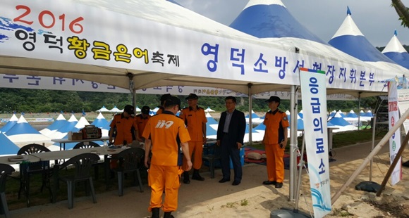 현재 영덕소방서는 영덕황금은어축제 현장에서 참가자의 안전을 위해 소방서CP와 응급처치 지원센터를 운영하고 있다. |