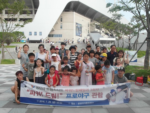 [경산] 경산시는 지난 7월 29일 가족 간 친밀도를 높이고 가족기능강화를 목표로 한 ‘파워드림패밀리(Power Dream Family)' 프로그램의 3회차로 드림스타트 대상가족 40여명에게 프로야구 경기 관람 기회를 제공했다.